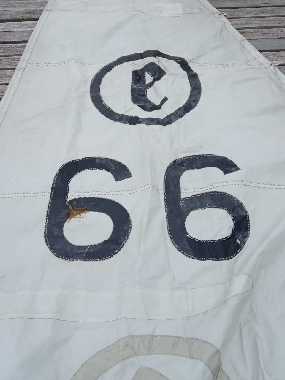 Es gibt noch ein altes Großsegel mit der Nummer 66. Zu alt für die Nutzung aber für die Historie aufgehoben.